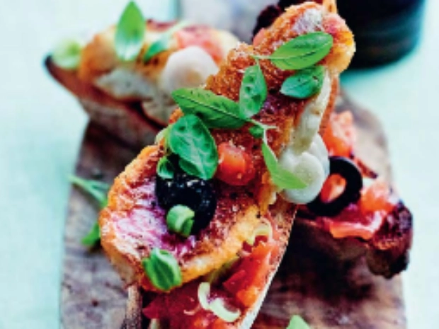 4. Badigeonner les 2 faces de la bourek d'huile d'olive à l'aide d'un pinceau et enfourner 7 à 10 minutes maximum à 180° C pour obtenir un œuf coulant. Retourner la bourek à mi-cuisson pour faire dorer les 2 faces.