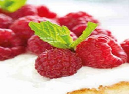 9. Juste avant de servir, décorer la bûche en disposant côte à côte les 8 framboises restantes