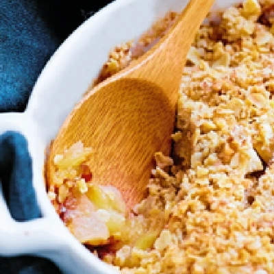 4. Faites cuire environ 40 minutes : le crumble doit être bien doré. Servez tiède.